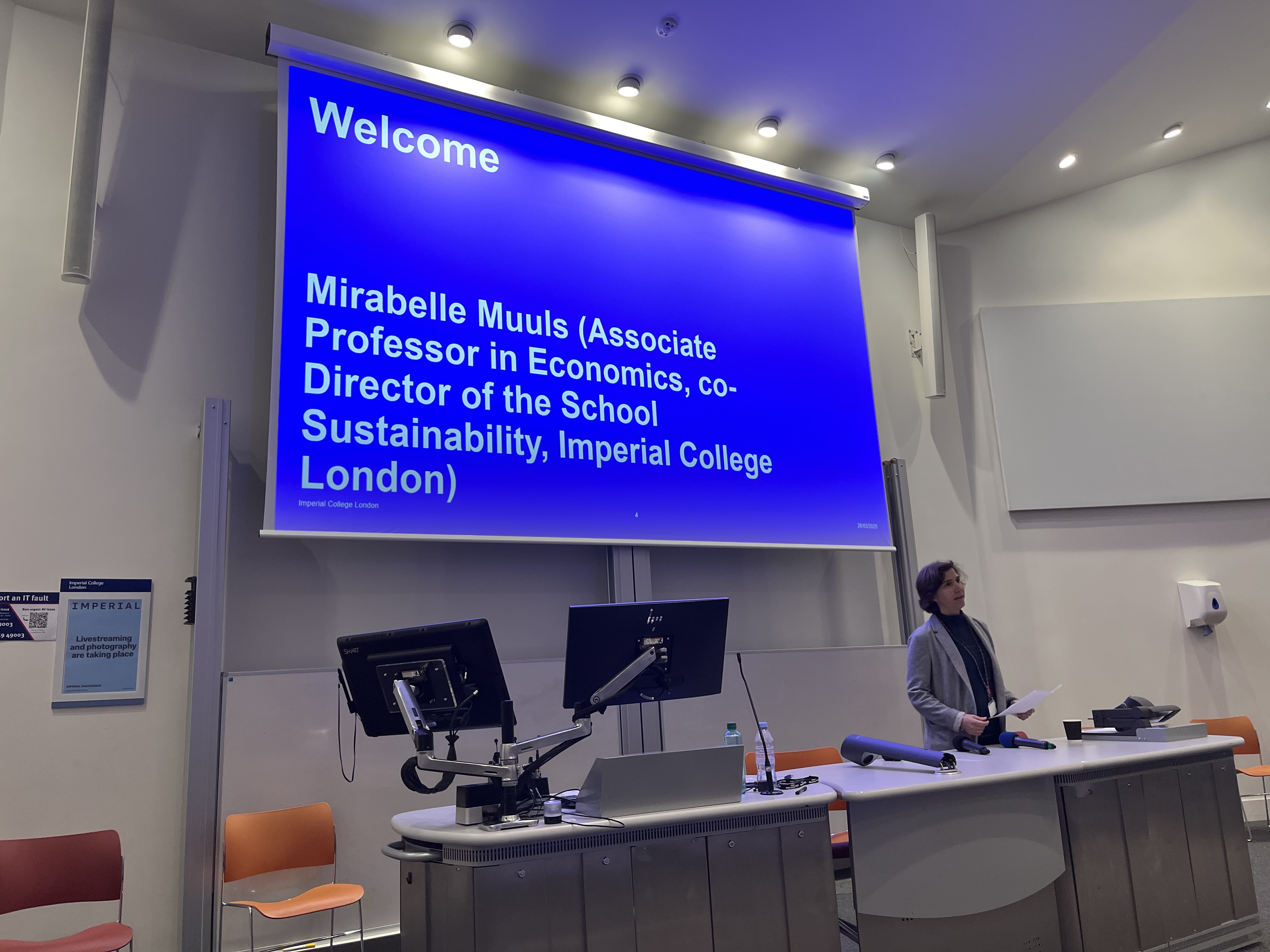 Mirabelle Mulls (Associate Professor in Economics, co-Director of the School of Sustainability and co-Director of the Hitachi-Imperial Centre for Decarbonisation and Natural Climate Solutions, Imperial College London) delivered the welcoming speech to open the Symposium. Which was then followed by our amazing four keynote speakers: Marcelle McManus (Professor of Energy and Environmental Engineering, Director Sustainable Energy Systems Research Centre, University of Bath), Harriet Wallace, the Director of Sustainability at Imperial College London, Richard Murphy (Professor of Life Cycle Assessment, University of Surrey) and Carly Whittaker (Senior Carbon Scientist, Forest Research).