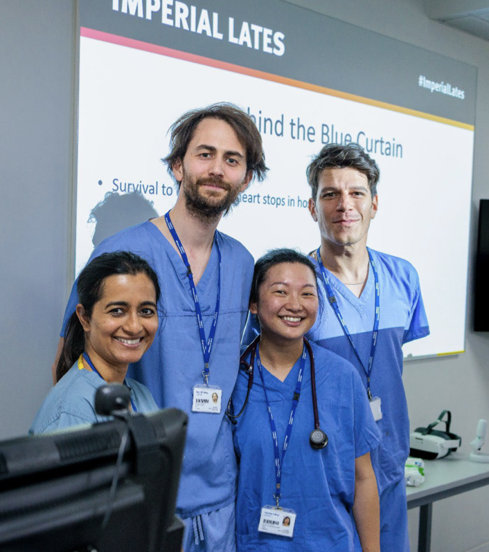 Dr Risheka Walls (Hon. Clinical Senior Lecturer) and the Digital Development Team in collaboration with the Digital Media Lab, were invited to present at Imperial Lates, taking members of the public 'Behind the Blue Curtain'. Using 360 virtual reality simulations, the public was able to try their hand at being a junior doctor managing a cardiac arrest. These ticketed sessions were hugely popular with long queues out the door. Featured on France TV Londres on YouTube.