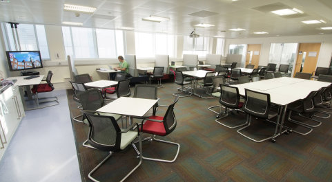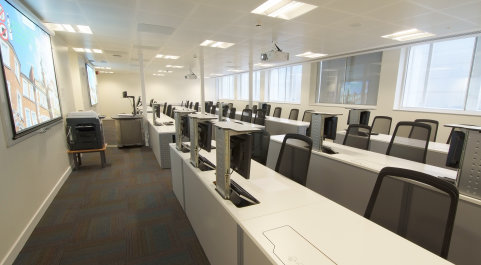- Fixed equipment: 48 PCs, two data projectors with pull down screens, two standard whiteboards, visualiser