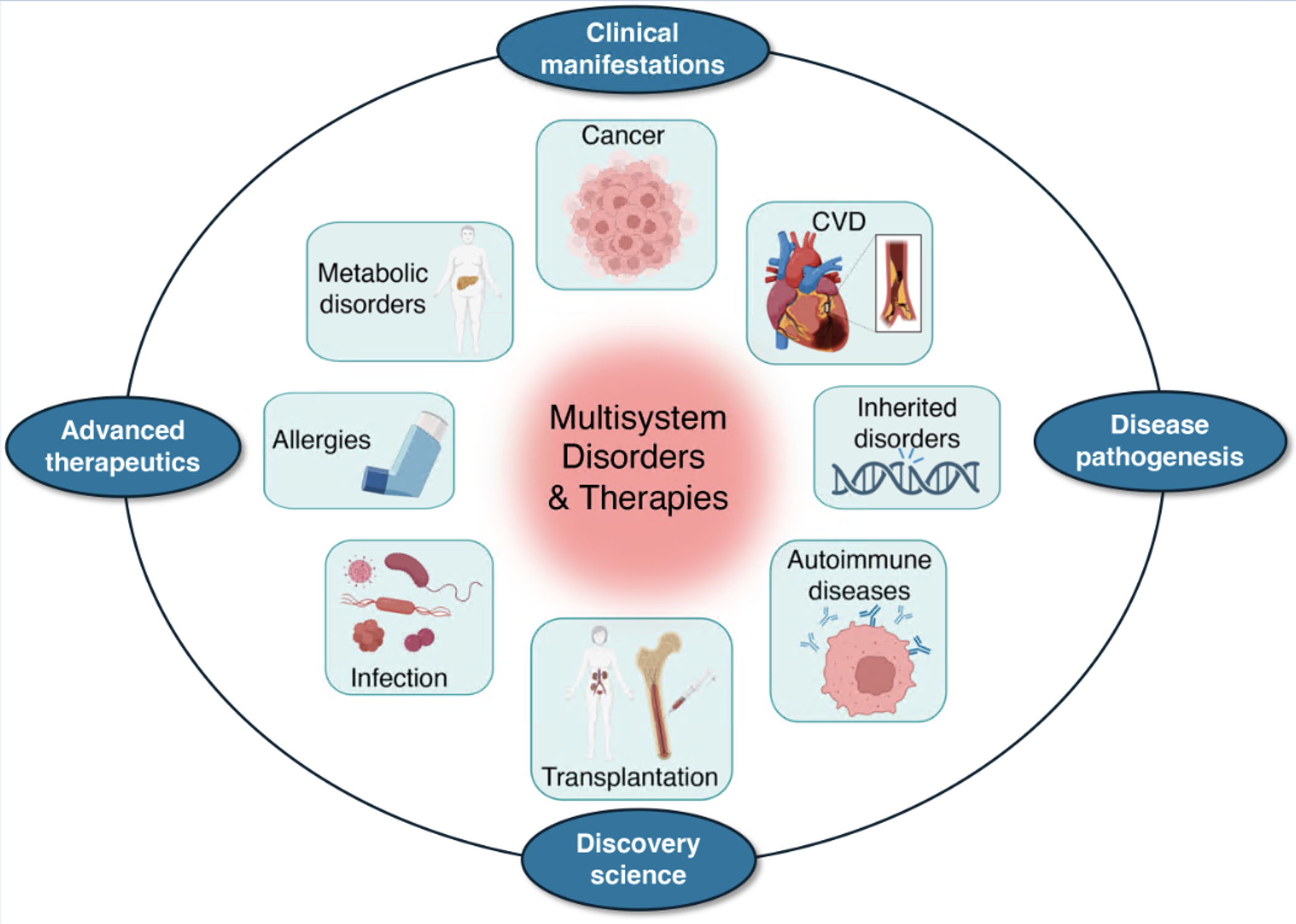 - Discuss and explain the scientific basis of selected malignant transformations, cardiovascular diseases (e.g. thrombotic disorders), autoimmune and metabolic disorders.