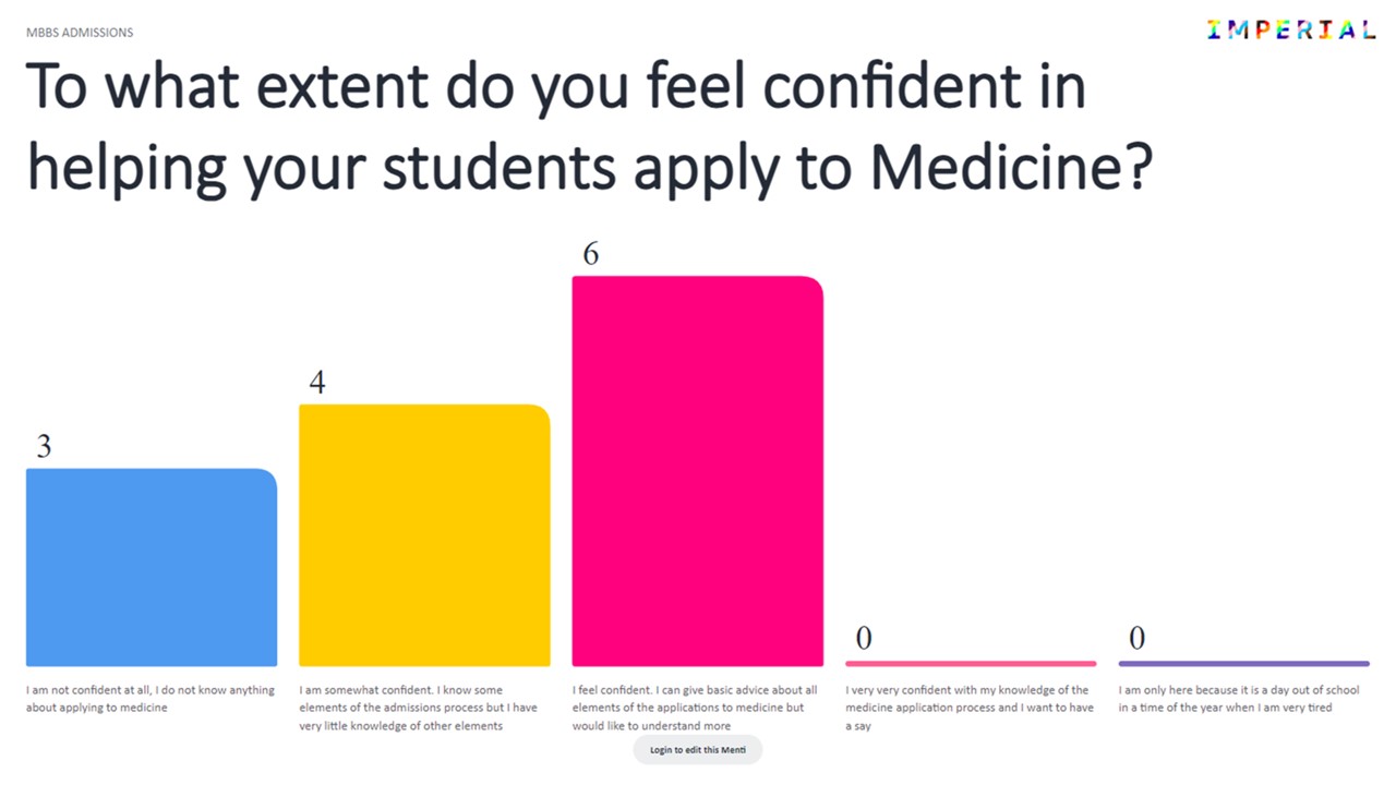 At the beginning of the day, we have asked teachers how confident they felt in helping students to apply to medicine and it immediately became clear that they would benefit from a collaboration to gain more insight to the admissions process.