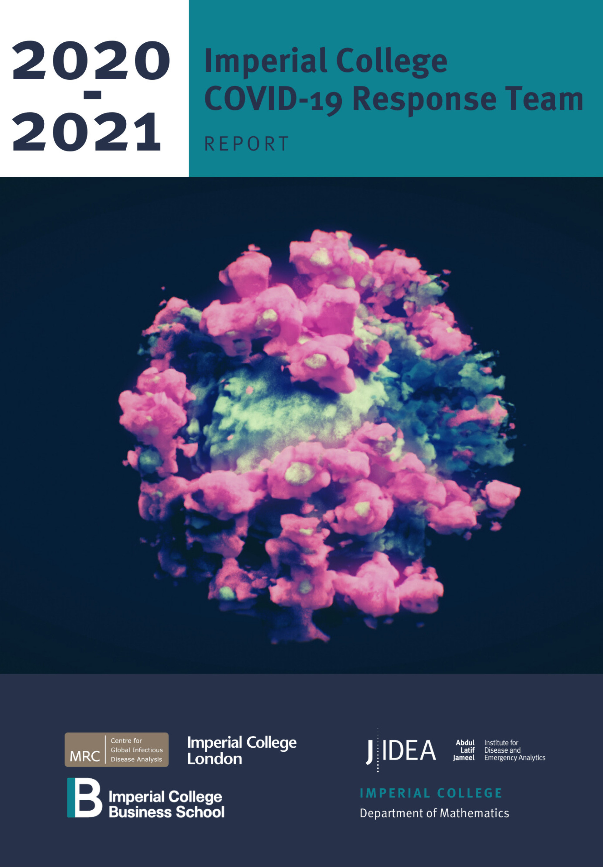 This includes an overview of the team's work on characterising the threat with specific focus on outbreak size, severity, intervention policy and genetics. In addition, it describes work assessing it's impact including interventions, health impacts, transmission patterns and indirect impacts. Describing the evolving policy response, it provides an overview of the support provided by real-time modelling, the REACT studies, the European and Global response and Software and tools that were developed. Looking to the future the report describes the ongoing work on vaccine and new variants of concern. Communicating the work across audiences, the report highlights the teams contributions to public resources such as web tools, training, virtual Q&A's, webinars, seminars and media engagements.