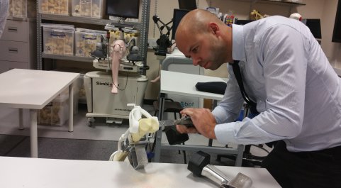 The laboratory is fully equipped for dry bone workshops. The space is designed to enable groups to acquire skills with a range of technologies that simulate the feel of a real operating theatre. Instruments are also available to test both the position and orientation of any procedure, and the mechanical strength of the construct.
