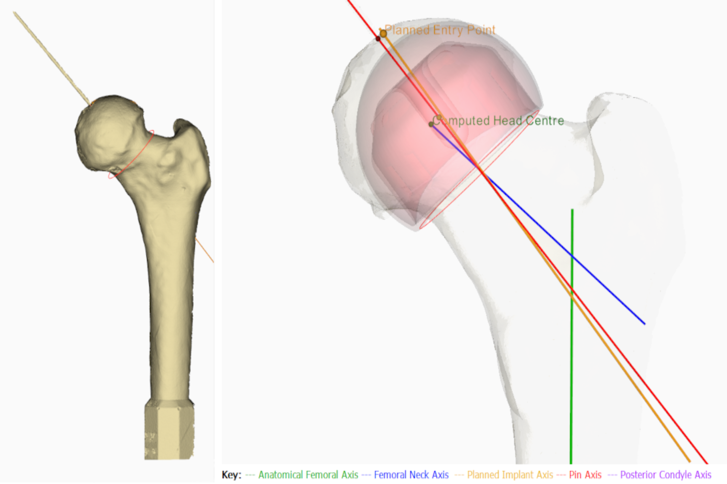 While total hip replacement is a very successful treatment for osteoarthritis of the hip, and we have options within our planning software for showing the position of a component within the bone, it does often require the removal of an amount of healthy bone, as well as that damaged by disease.