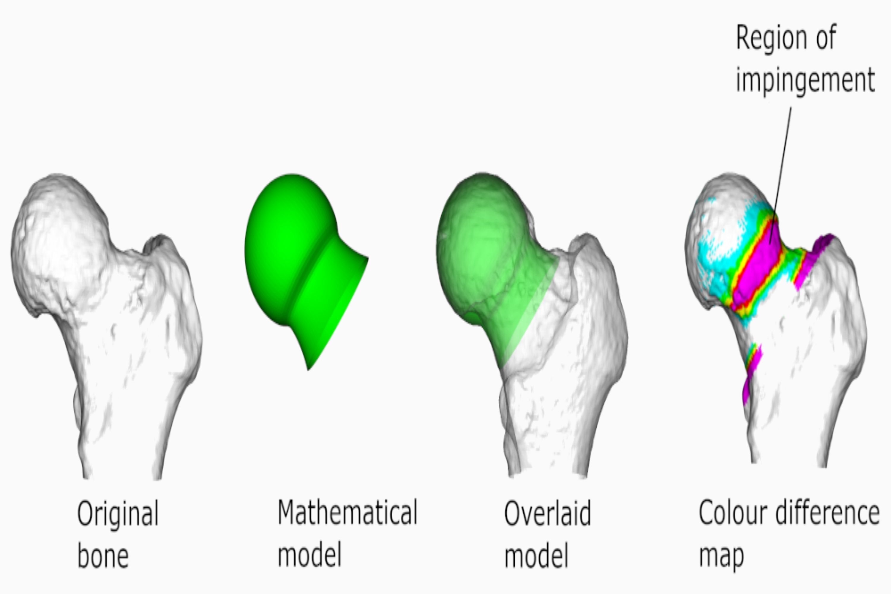 We developed software to take a 3D model of the patient's femoral head and approximate it to a mathematically ideal shape. We can then determine the difference between the ideal shape and the actual shape to give the surgeon a plan to show which areas of the neck should be reshaped.