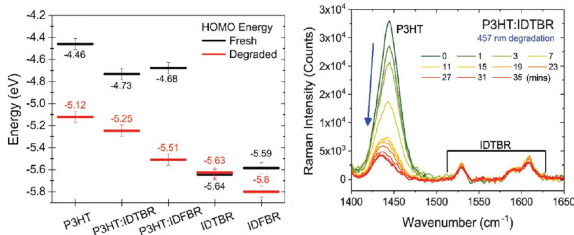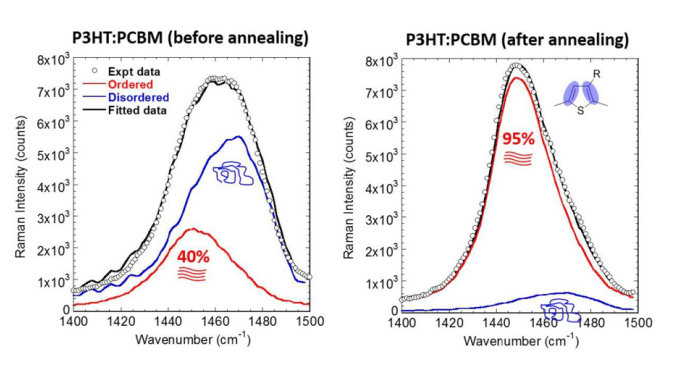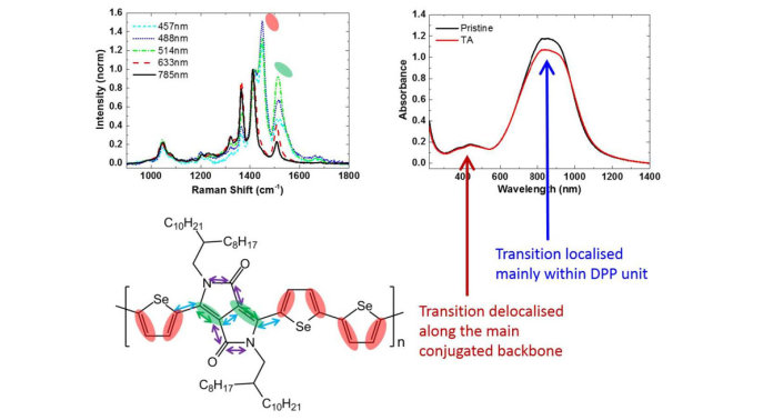 In this regard, our team has been developing advanced optical and structural probes for molecular semiconductors. For example, we have developed and established Raman spectroscopy as an advanced structural nanoprobe for conjugated molecular semiconductors. Utilising selective resonant and polarisation dependent excitations, together with in situ control of temperature, pressure, electrical, and electrochemical potential, we have demonstrated its unique capability to elucidate the properties of molecular semiconductors. These include chemical structure, molecular conformation, order, orientation, fundamental photo- and electro-chemical processes and stability - all of which are critically important to the performance of a wide range of optical and electronic organic semiconductor devices.