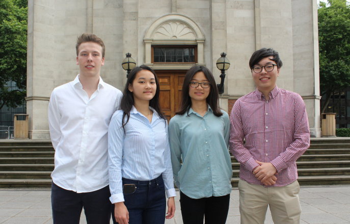 Team Debac are Thomas Caganek, Kim Ngan Luu Hoang and Mingke Pan from Life Sciences, and Gi Young Park from Physics. Together they are working on a method for early detection of surgical wound infection using pigment-containing liposomes.