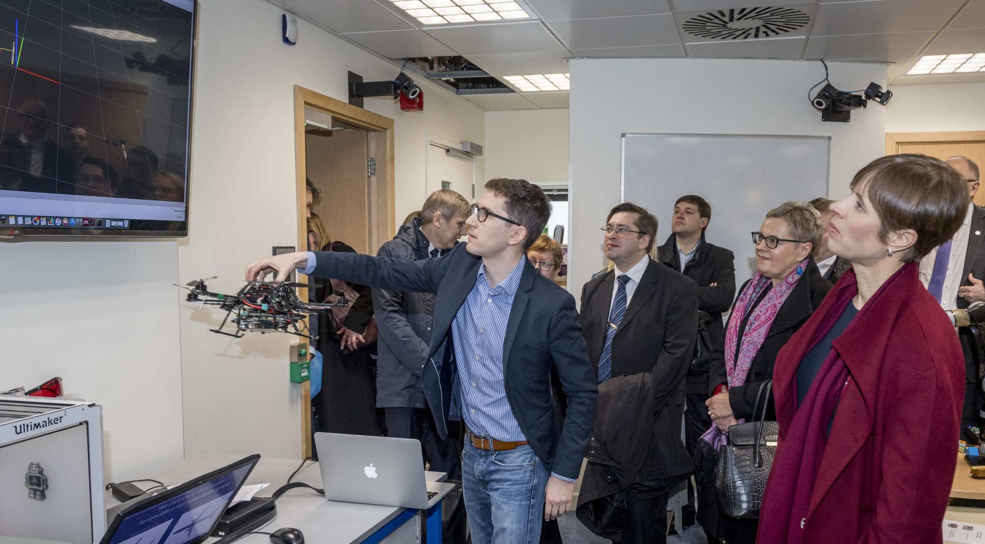 The President saw how Dr Leutenegger and colleagues are combining these techniques to improve the accuracy and reliability of drones.