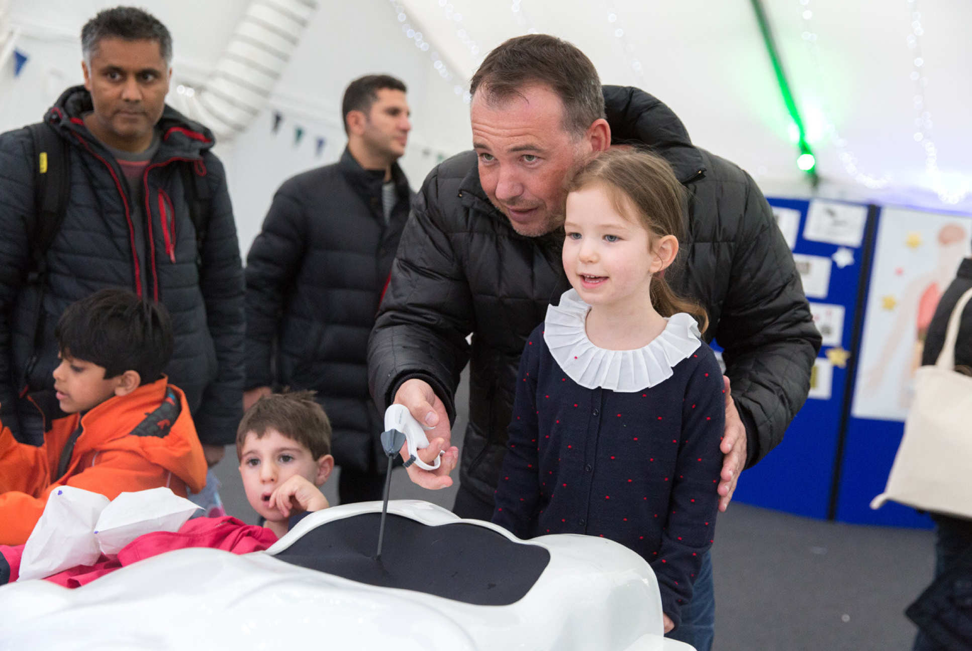 In the marquee next door in the Enginuity Zone, children gathered for their chance to create their own squiggle machine.