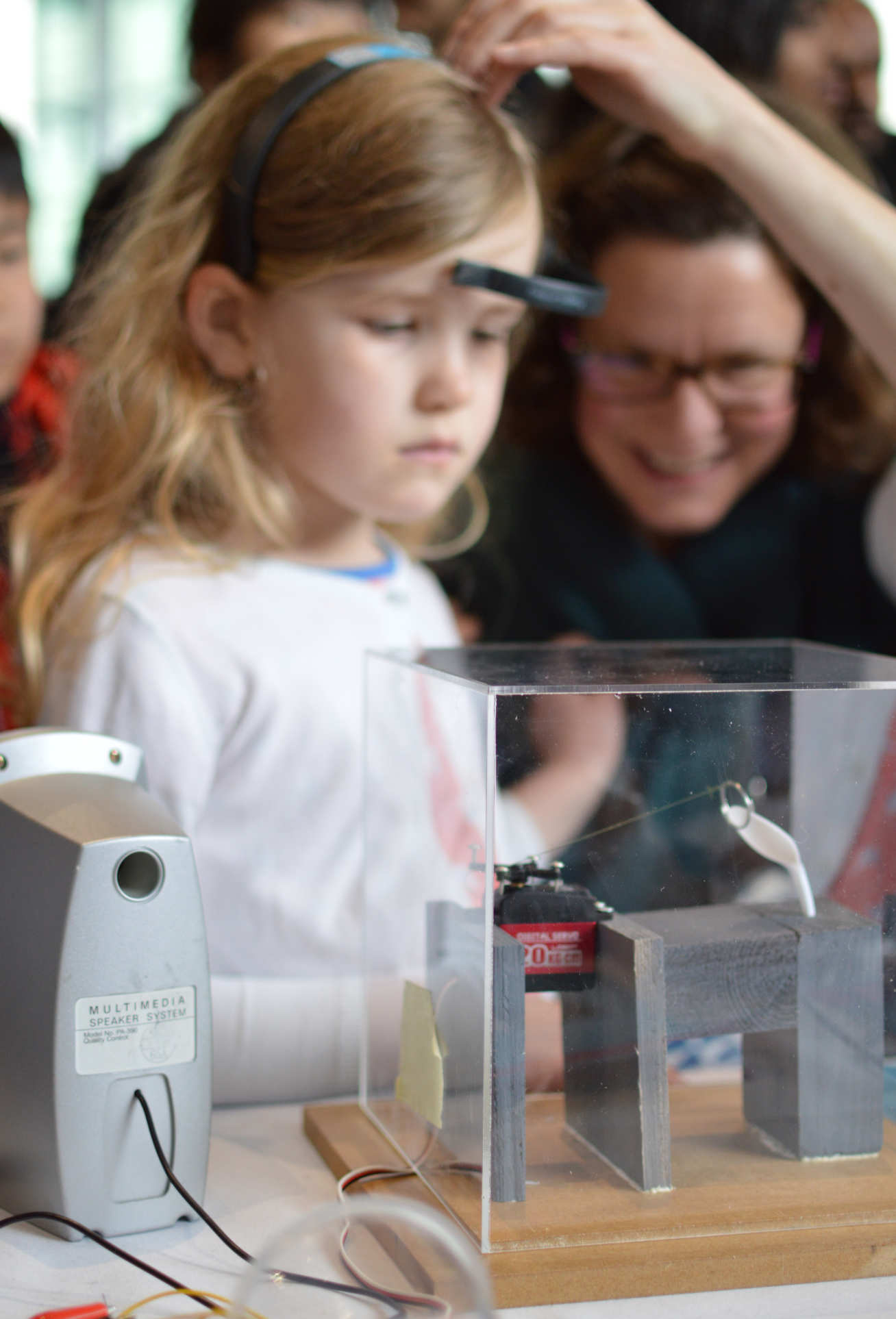 In the second MindGame visitors could break a plastic spoon with the power of their mind! Sounds like something from The Matrix? It’s the power of neurotechnology. Here the students measured brain waves with a simple EEG headset and applied an algorithm to measure the attention level of the participant. If the visitor concentrated hard enough they were able to drive a motor, pulling the spoon by a string until it eventually broke! This activity demonstrated another common neurotechnology application: the brain-machine interface (BMI), which aims to allow communication between the brain and something that is “driven” by the brain (in this case, the motor). Visitors could measure how ‘strong’ their brains were and whether they could break the spoon. But is there any spoon*?