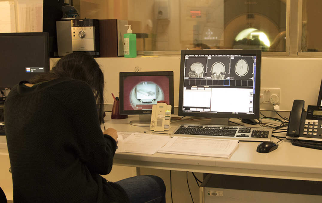 Outside of the scanner, the participant will then perform some computer-based tasks. They play some games where we measure how quickly they can respond to prompts on the screen, which helps us to see whether the hormones inhibit repetitive actions.
