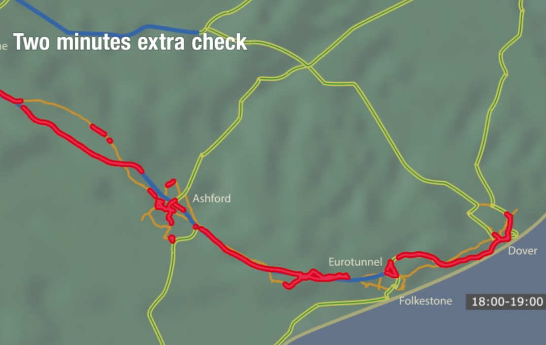 Commissioned by the BBC, his team created simulations of how motorway queues could stack up after longer border checks per vehicle at the ferry port in Dover, and at the Eurotunnel port in Folkestone, both in Kent.