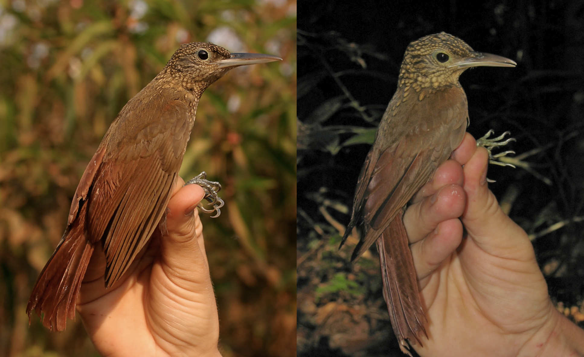 Figure 2: Two sister species of weedcreeper – Xiphorhynchus elegans (Bolivia) and Xiphorhynchus spixi (Brazil) – with similar ecological traits and abutting geographical ranges. Photos: Joe Tobias.