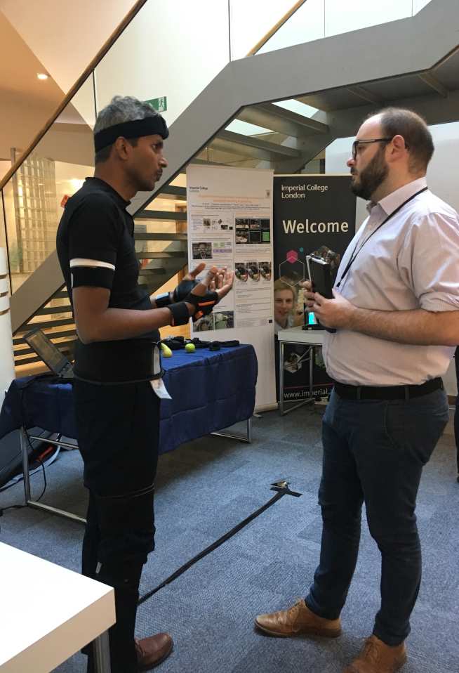 Balasundaram Kadirvelu, a Research Associate in the Department of Computing, showed off the Brain and Behaviour Lab’s wearable sensors that track the progression of Duchenne Muscular Dystrophy, or the improvement in stroke patients.