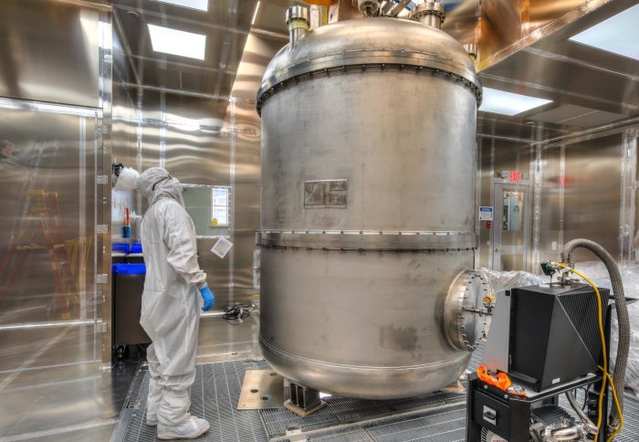 The huge titanium chamber, designed to keep its contents at -100C, is a crucial part of a new experiment hoping to detect dark matter.