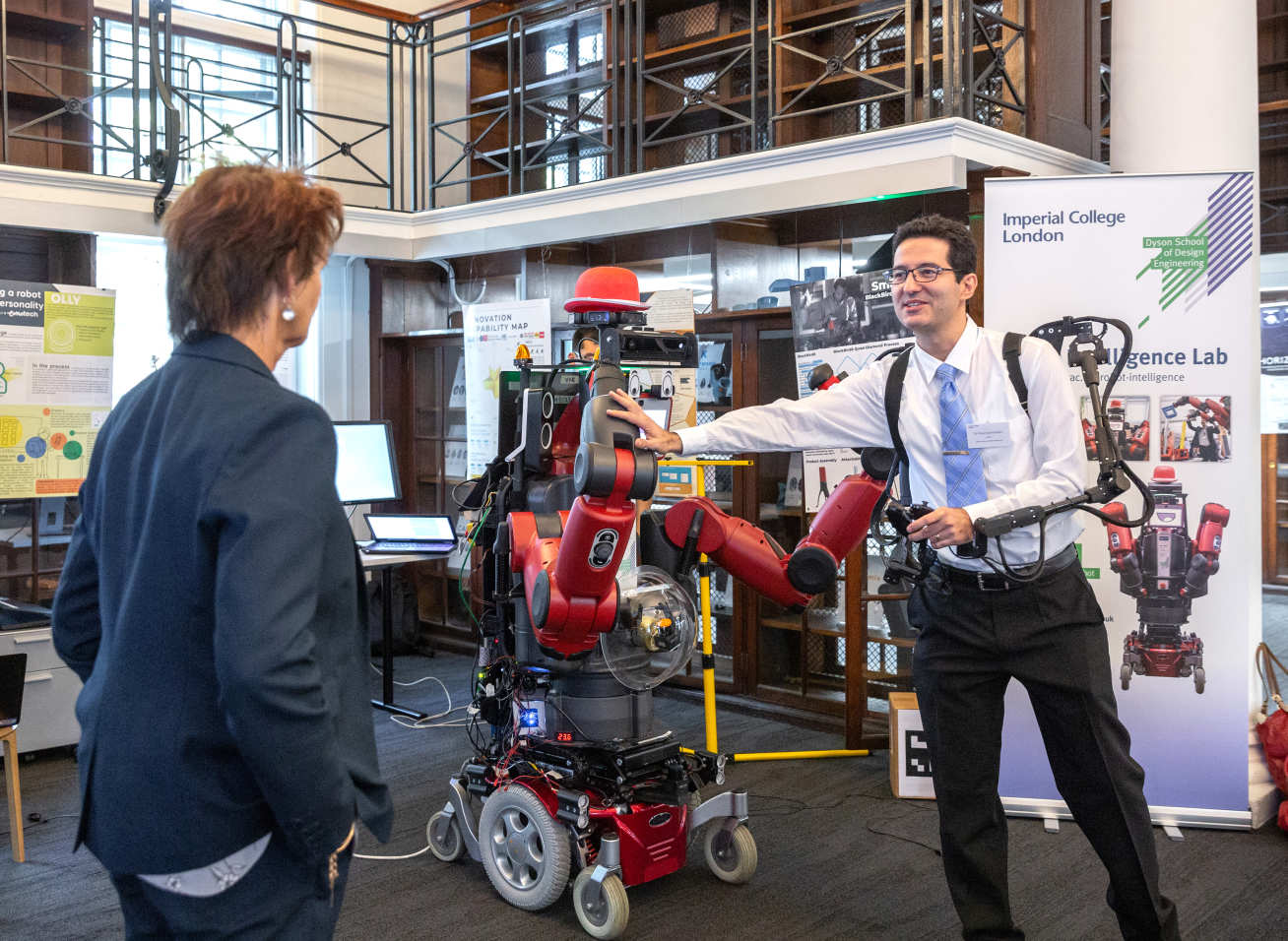 Next stop was the Dyson School of Design Engineering, where the delegation were given a short introduction to the School and its pedagogy by Professor Peter Childs, Head of the School of Design Engineering. Dr Petar Kormushev, Director of the Robot Intelligence Lab, gave a live demo with Robot DE NIRO, demonstrating the robot’s physical skill learning capabilities.