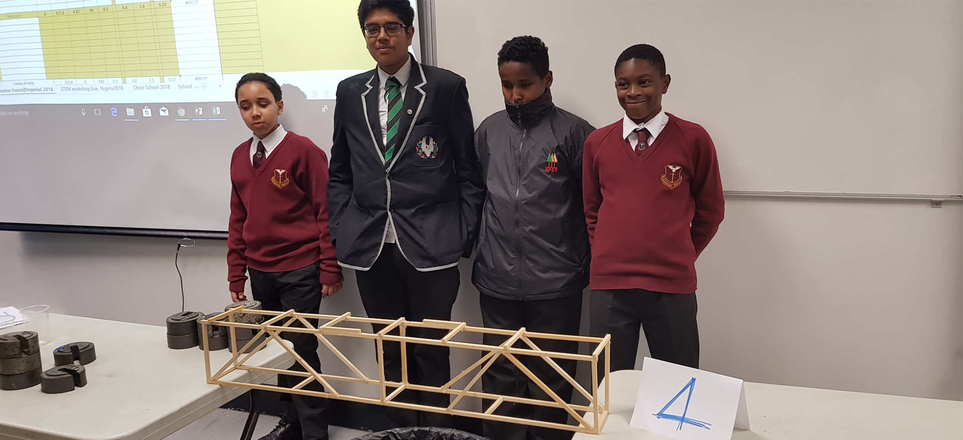 The finale of the day was the engineering challenge led by Dr Popo-Ola. The students discovered how engineers design and build bridges, learning first hand about the physics of construction. Students were tasked with building their own structures from wood, ensuring they incorporated the basic principles of physics into their designs.