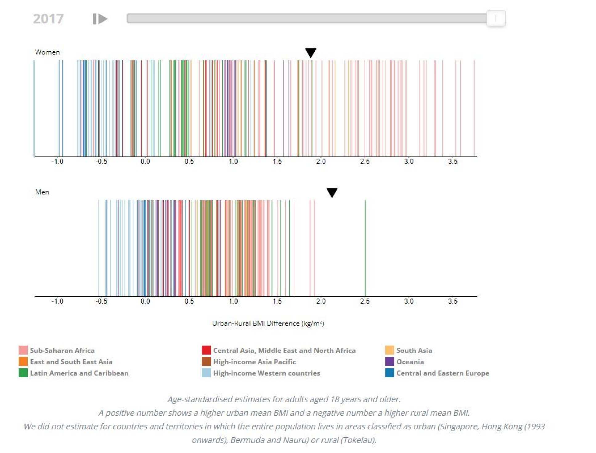 Regional and country data on BMI in rural and urban populations