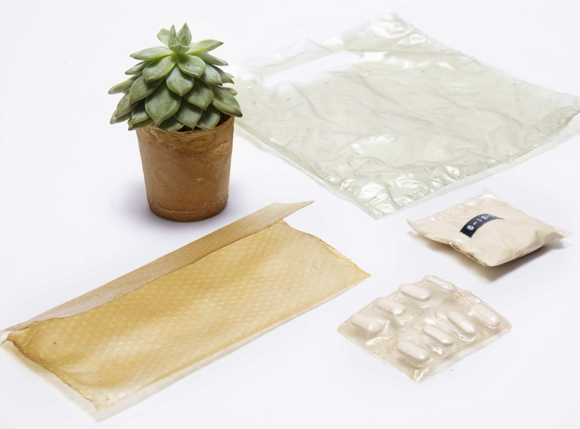 The group has used their custom machines to prototype potential applications, each of which exploits a specific property of the material to demonstrate its potential. These prototypes range from ant-bacterial blister packaging and food-safe carrier bags to self-fertilising plant pots.