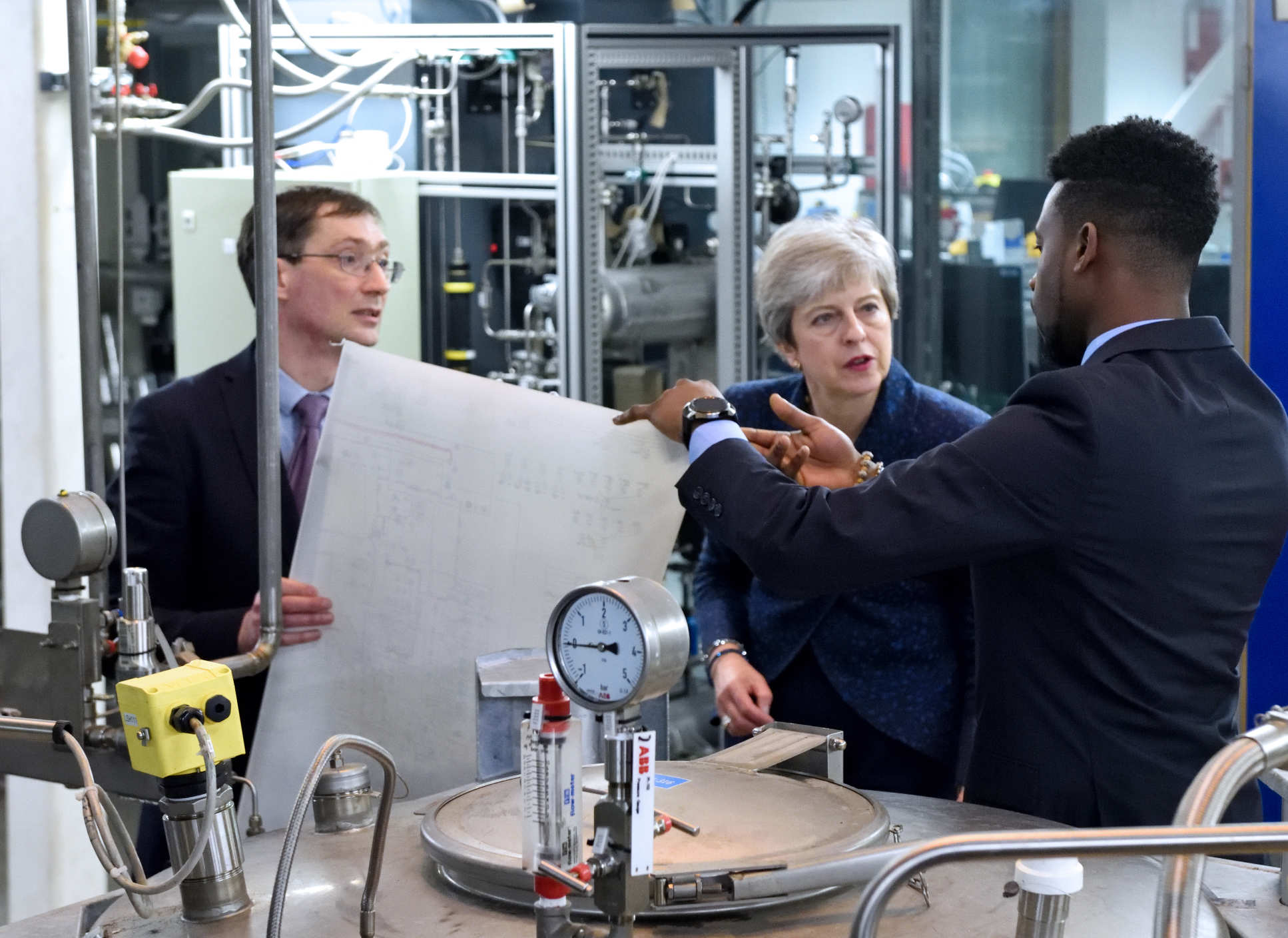 Dr Colin Hale and students demonstrated carbon capture to Prime Minister Theresa May and Energy Minister Claire Perry