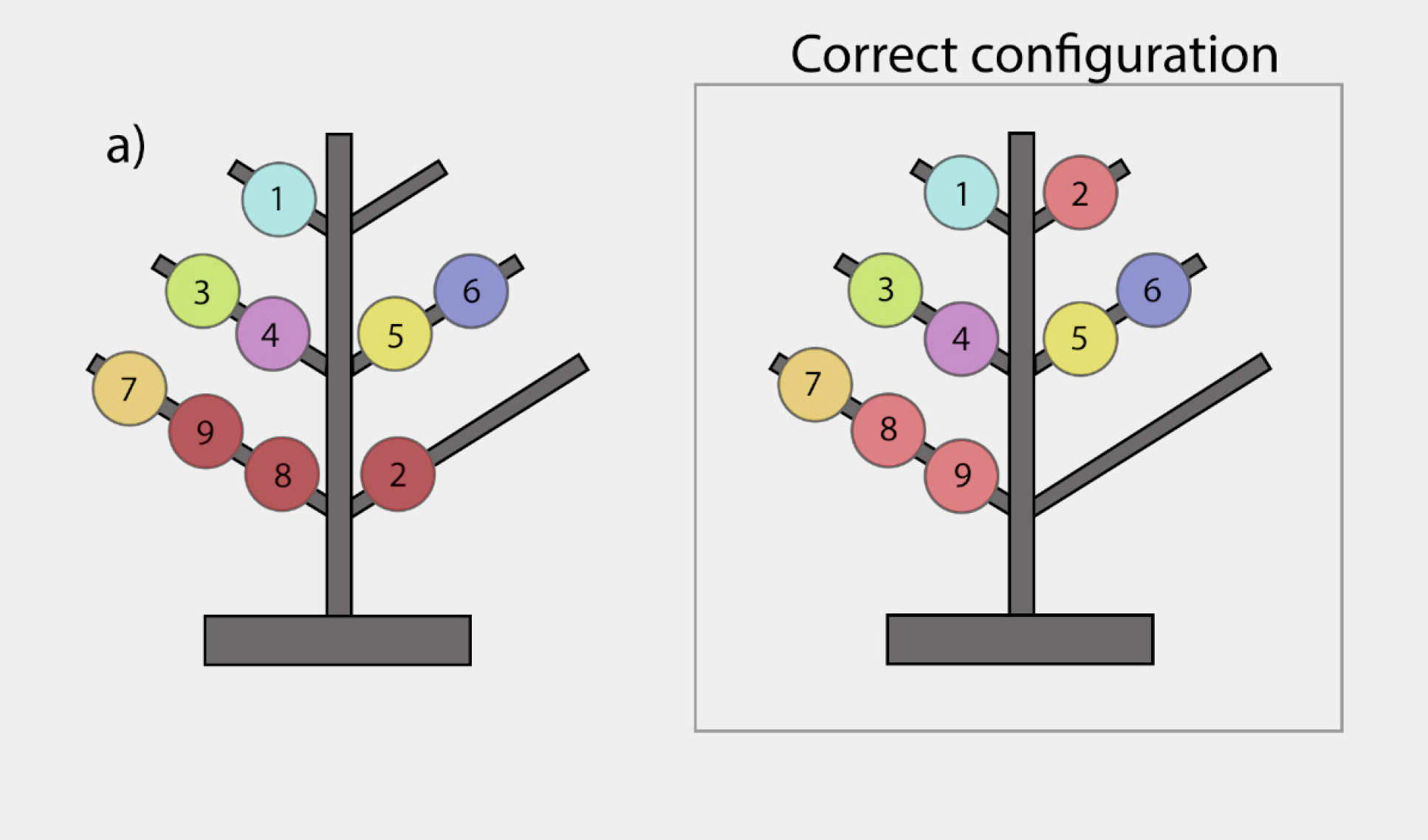 Only one bead can be moved at a time. The beads slide on and off via the ends of the branches. They cannot move past each other on a branch. They must be moved from branch to branch, not placed to the side. (Answer at the end of the article)
