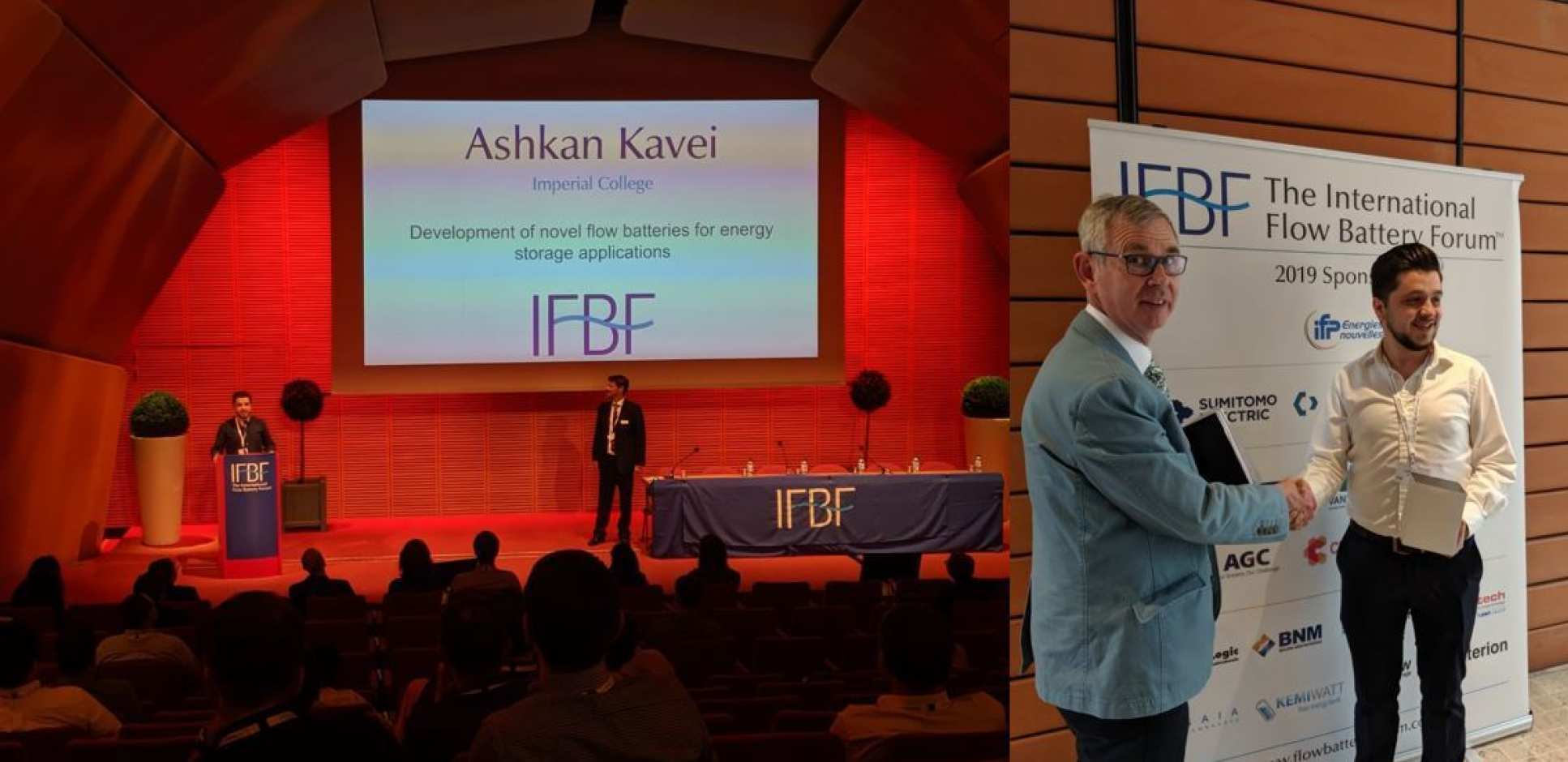 Ashkan Kavei attended the International Flow Battery Forum (IFBF) in Lyon, where he represented Imperial college and RFC Power, a spin out from Imperial. At IFBF, Ashkan won an award for giving the best pitch, a pitch that brought many interests and collaborations for the future.