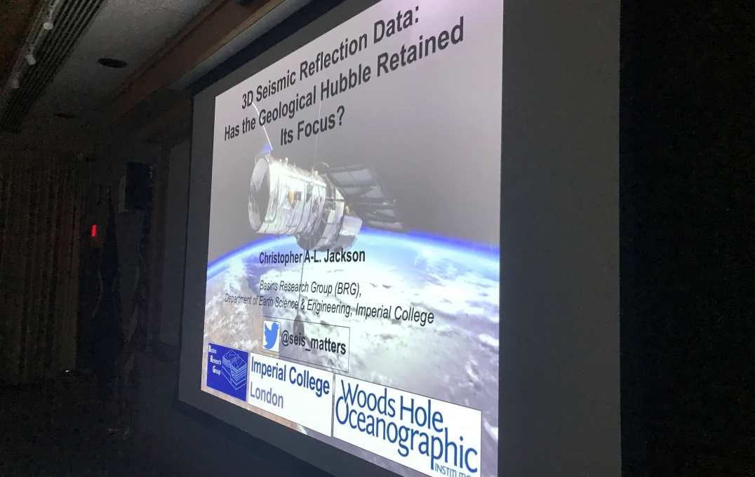 Chris Jackson spent the week of 17 – 21 June at Woods-Hole Oceanographic Institution (WHOI), Cape Cod, US serving as the H. Burr Steinbach Visiting Scholar. During his visit, Chris gave two talks on the use of seismic reflection data in basin analysis. He also hosted a round-table discussion with students about the pros and cons of academic life.