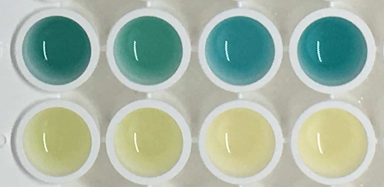 To develop the colour-changing urine test, the researchers used two AuNC properties – their very small (<2 nanometre) size, and their ability to cause a blue colour change when treated with a chemical substrate and hydrogen peroxide.
