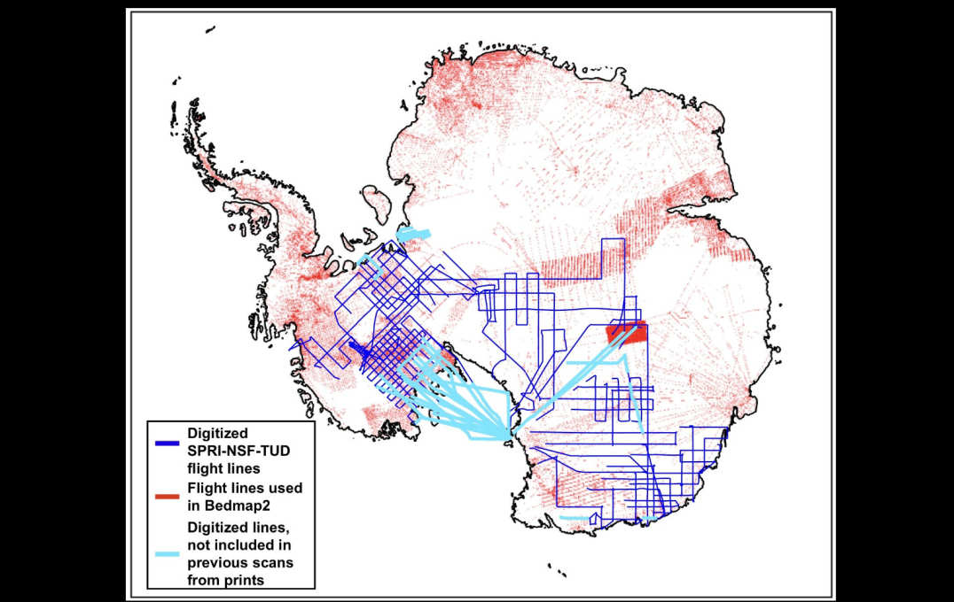 Researchers digitised more than 400,000 flight kilometres of Antarctic radar data originally captured on 35mm optical film between 1971 and 1979 by scientists during research flights over the continent.