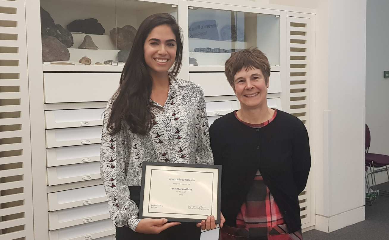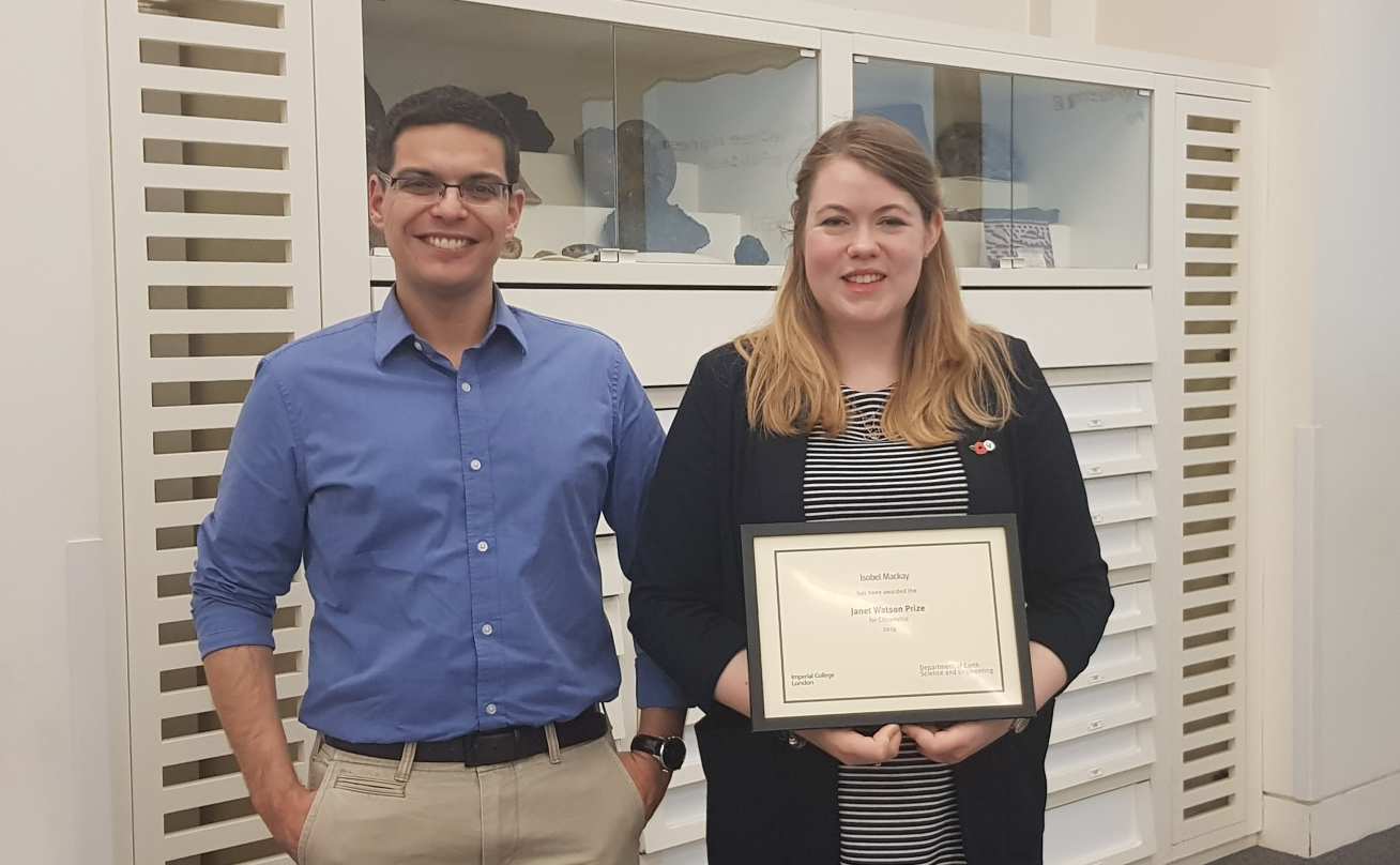The annual Janet Watson Memorial Prize rewards a PhD student for research excellence and good citizenship in the Department of Earth Science and Engineering. Professor Janet Watson (pictured left) was a British geologist, the first woman to be President of the Geological Society of London, and an alumnus of Imperial College London.