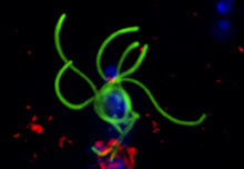 Malaria kills more than 400,000 people and infects more than 200 million people worldwide every year. It is caused by a parasite, Plasmodium falciparum, which spends part of its life in the midgut of certain mosquito species.