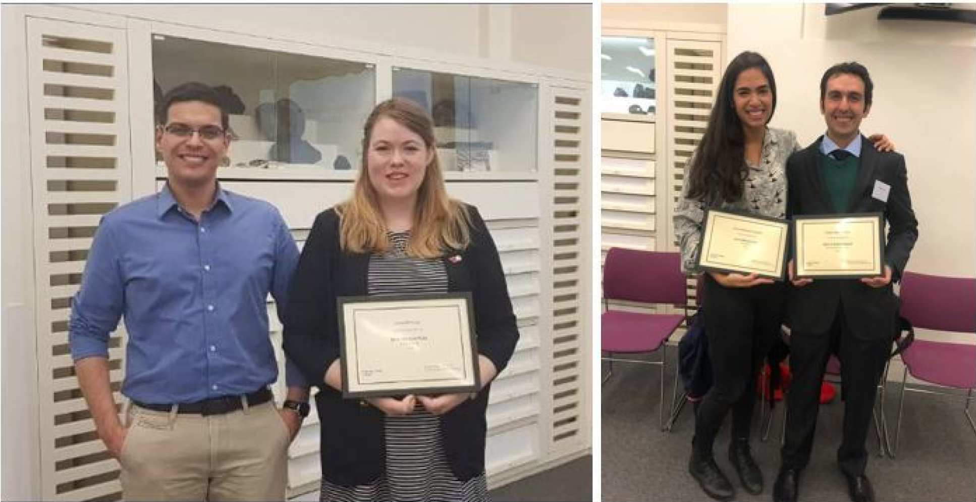 Victoria Fernandes and Dr Isobel Mackay have been awarded the departmental Janet Watson prizes for research and citizenship. The John Archer award was presented to Felipe Huerta Perez.