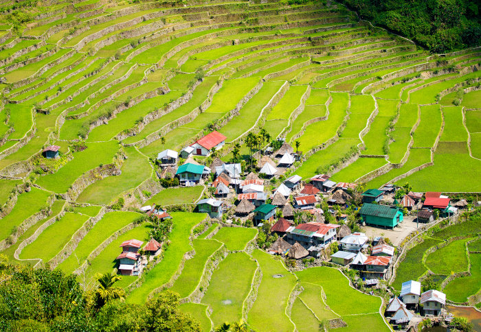 Village among rice terraces in the Philippines