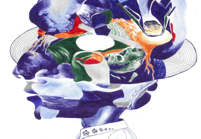 Materials used: ball-point pen, water-colour, marker pen, sketch paper.
