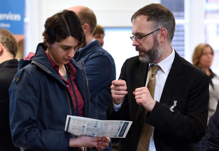 Arthur Wadsworth from the FoNS Ed Tech team at the Showcase with Dr Laura Patel from the Department of Chemistry