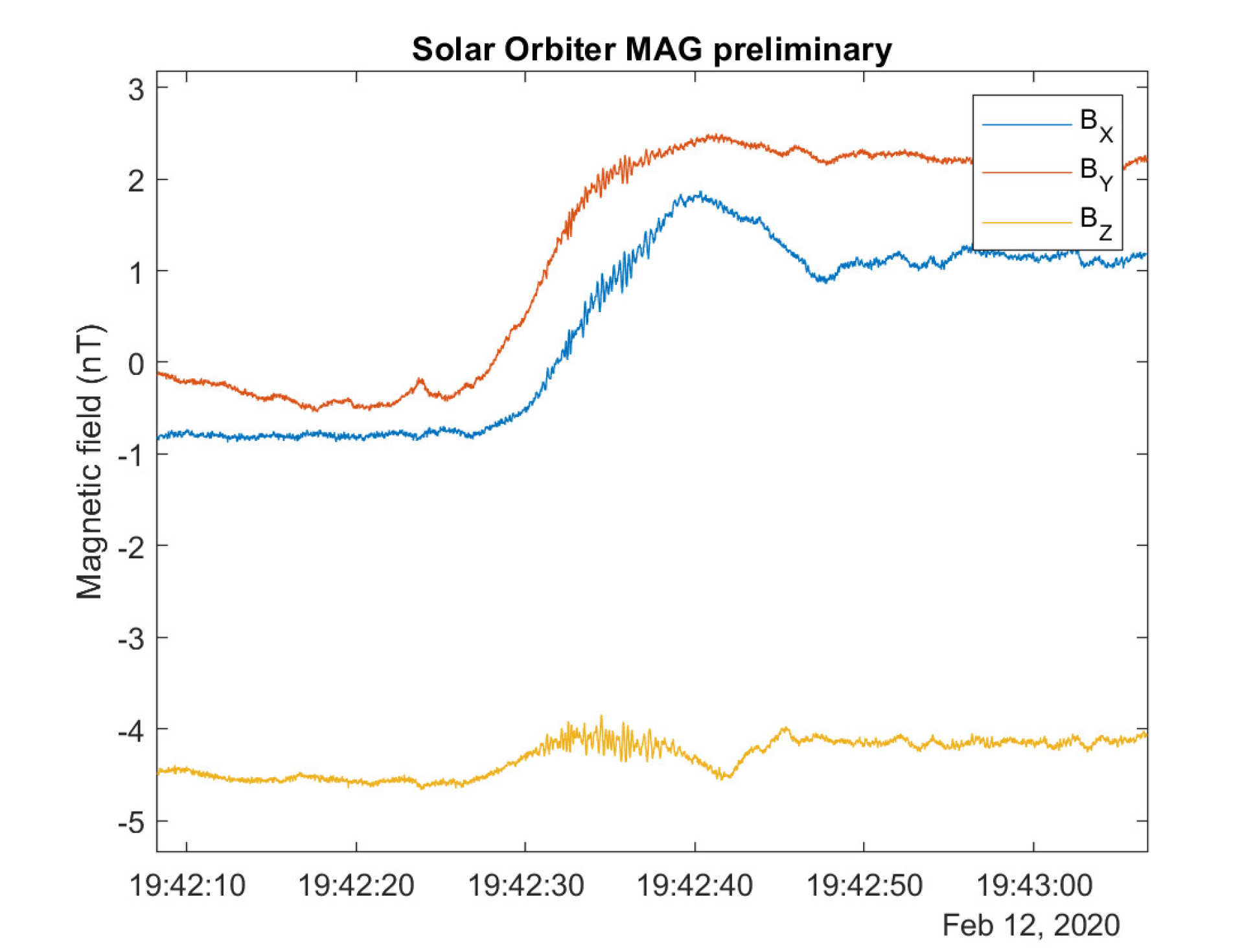 The magnetometer was the first instrument to switch on, less than 24 hours after launch, beaming back ‘housekeeping’ data showing it was alive and functioning. Three days later (13 February), it sent down its first science data, representing magnetic measurements in the solar wind, one of the main targets of the Solar Orbiter mission.