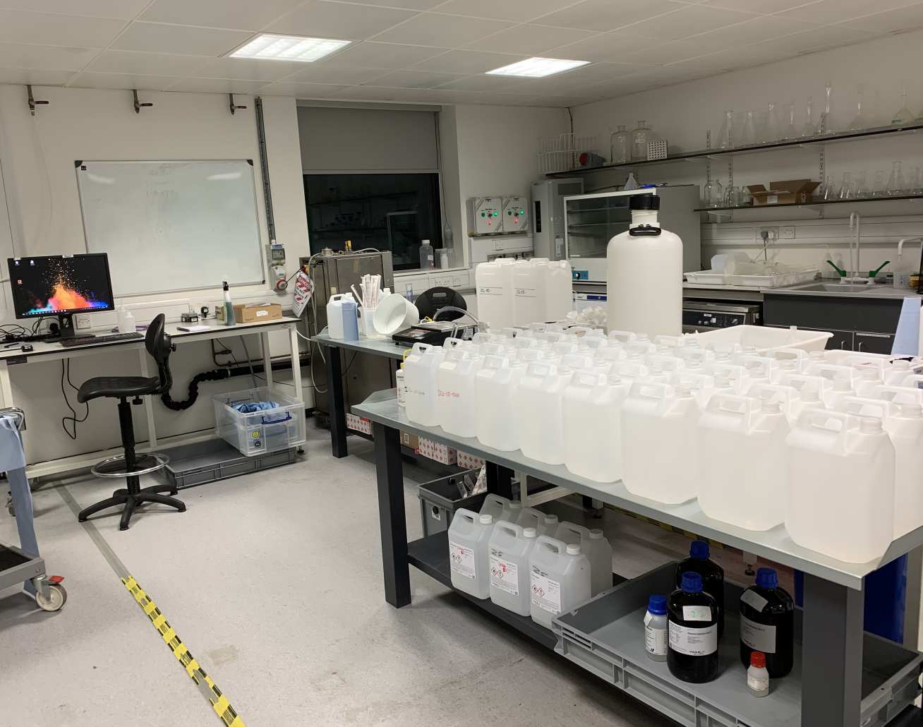 The sanitiser is produced by a team from Imperial’s Department of Chemical Engineering Department, made up of safety experts, academic researchers, and specialist lab technicians. The team includes: Severine Toson (Health and Safety Officer), Pim Amrit (Pim Amrit, Departmental Services and Safety Manager, Richard Dixon (Operational Technician), Parth Shah (Research Assistant), Dr Wenqian Chen (Research Associate), Colin Hale (Senior Teaching Fellow), Dr Umang Shah (Principal Teaching Fellow), Andrew Macey (Teaching Lab Technician) and Eddie Hartrick (Process Safety Manager).