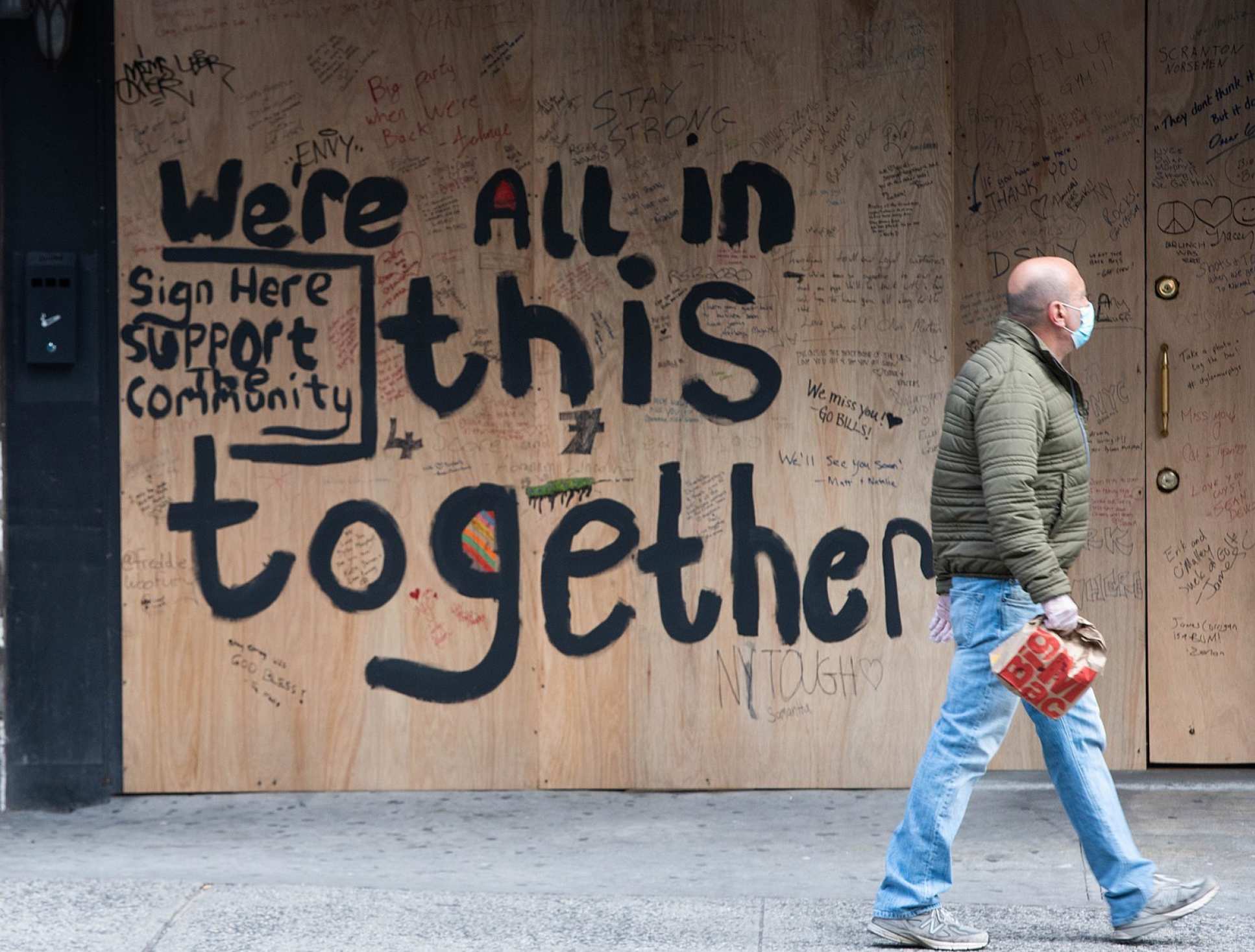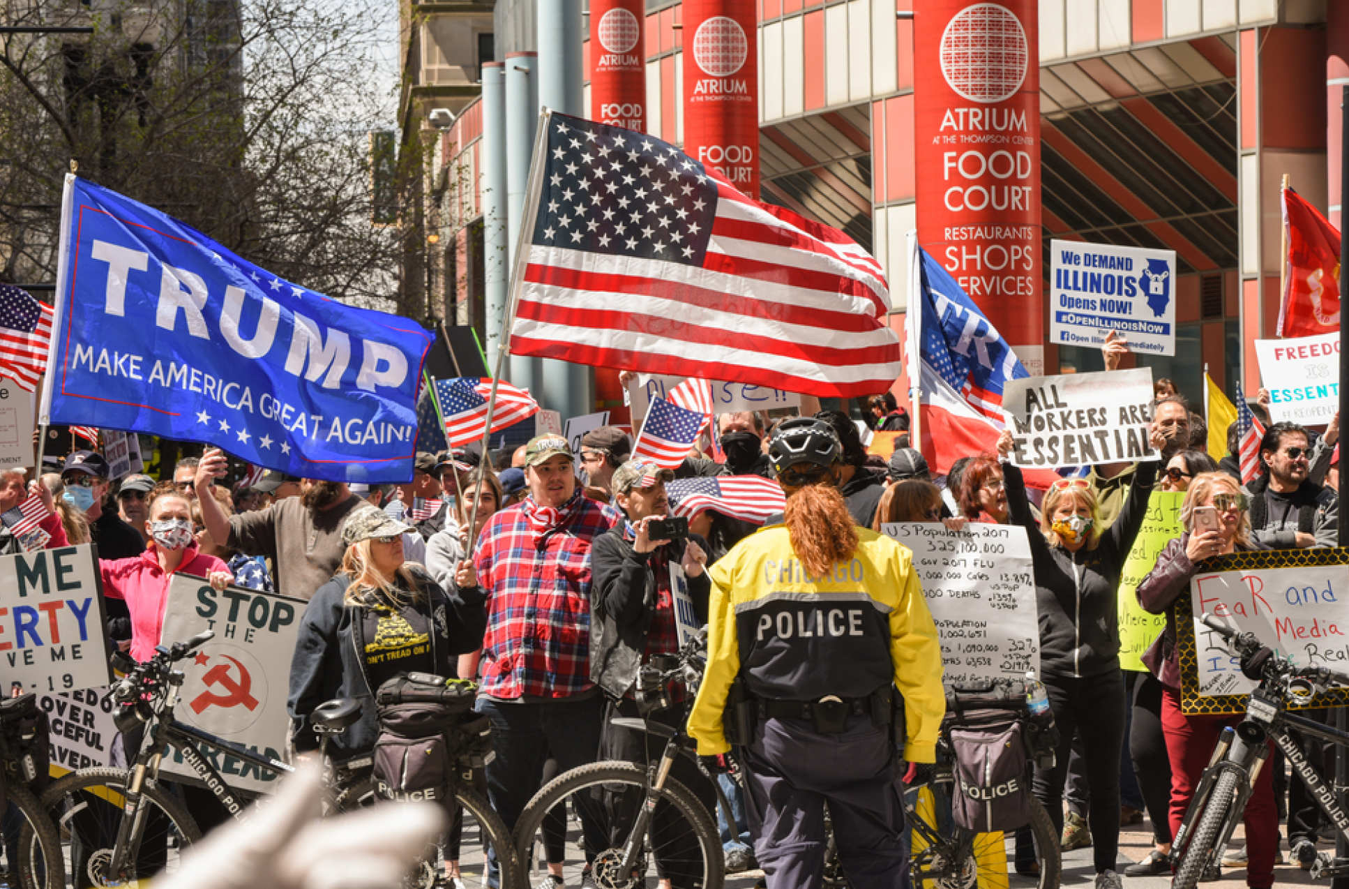 [Picture credits: US lockdown protestors, Shutterstock; New York street, Anthony Quintano; all other images, Imperial College London]