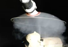 Above: This video shows an example of a droplet cloud in the wake of a manikin simulator.