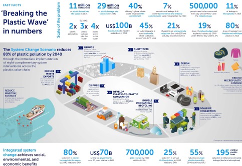 The research also found that delaying interventions by five years could result in an additional 80 million metric tons of plastic going into the ocean by 2040. All elements of the ‘System Change’ scenario exist today or are under development and near adoption.