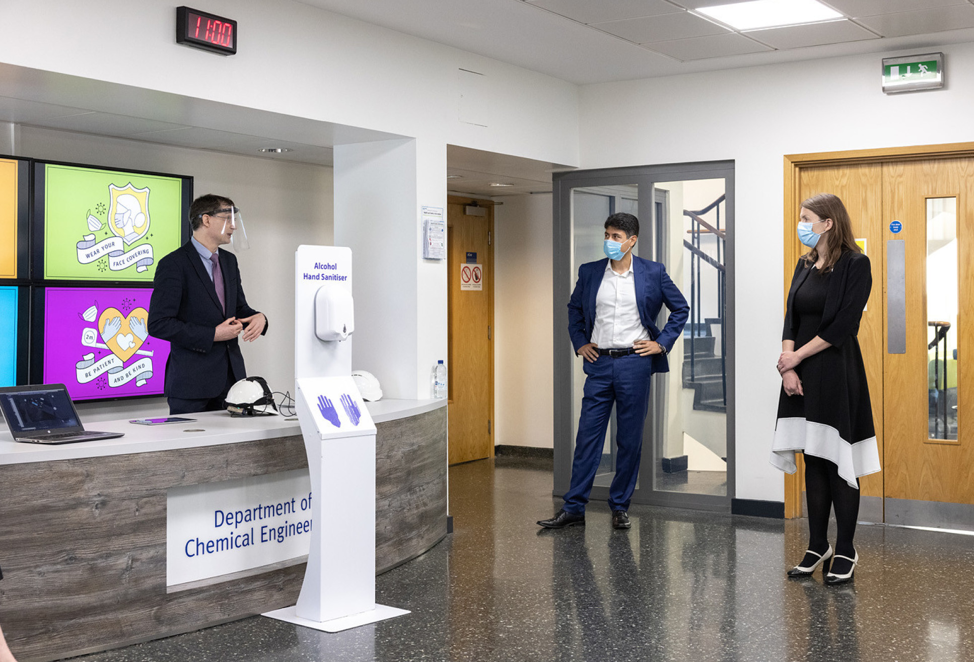 The Minister was welcomed by Professor Ian Walmsley, who together with Professor Emma McCoy, Professor Omar Matar, Leila Guerra, and Shervin Sabeghi, Imperial College Union’s Deputy President, explained the multi-mode teaching and other measures put in place by Imperial to ensure students continue to receive a world-class education while remaining safe.
