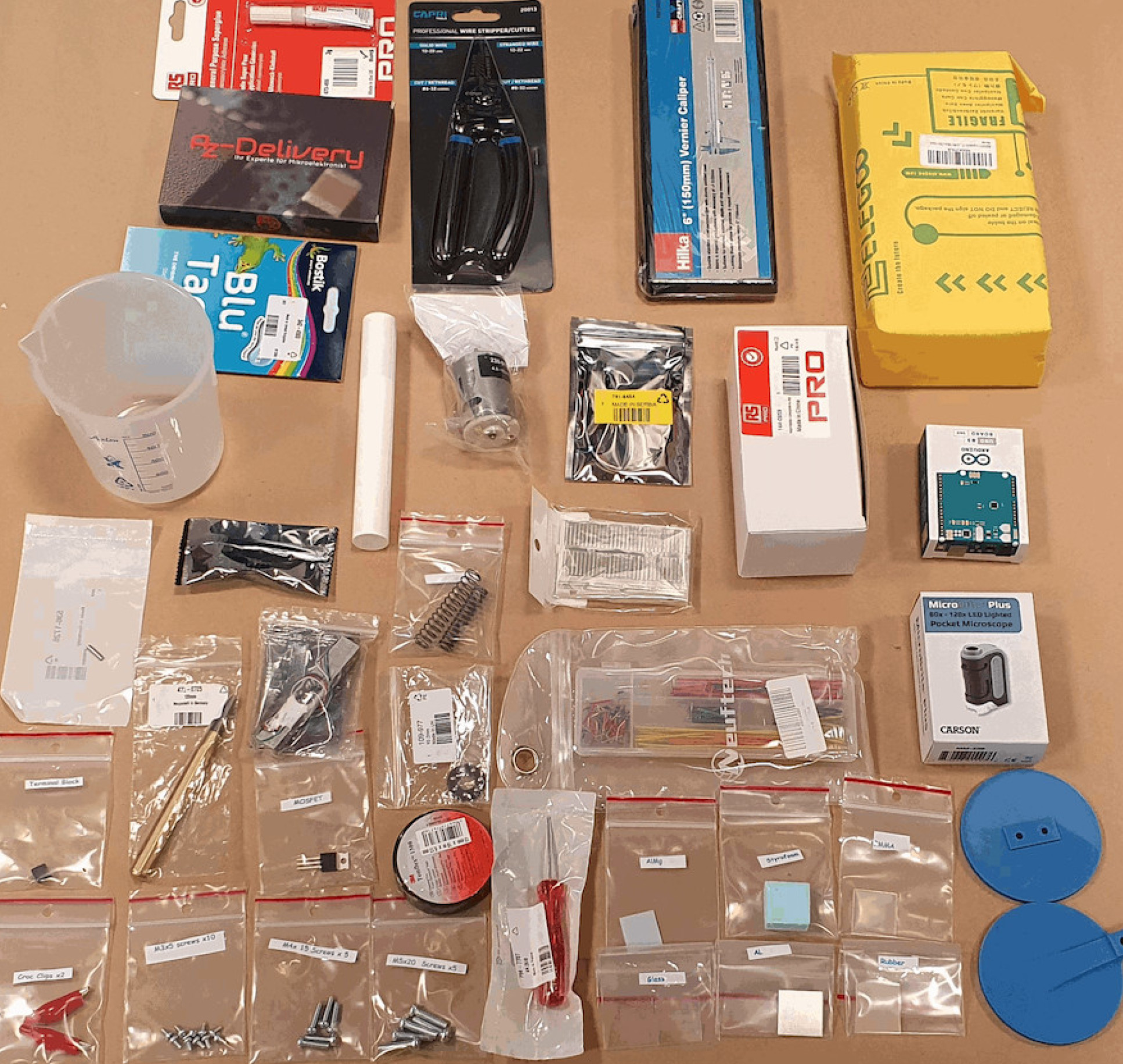 The users of the box will be able to use the equipment to conduct experiments which deepen their knowledge of Materials characterisation, including Thermal conductivity, Electrical Conductivity, Density and hardness of materials.