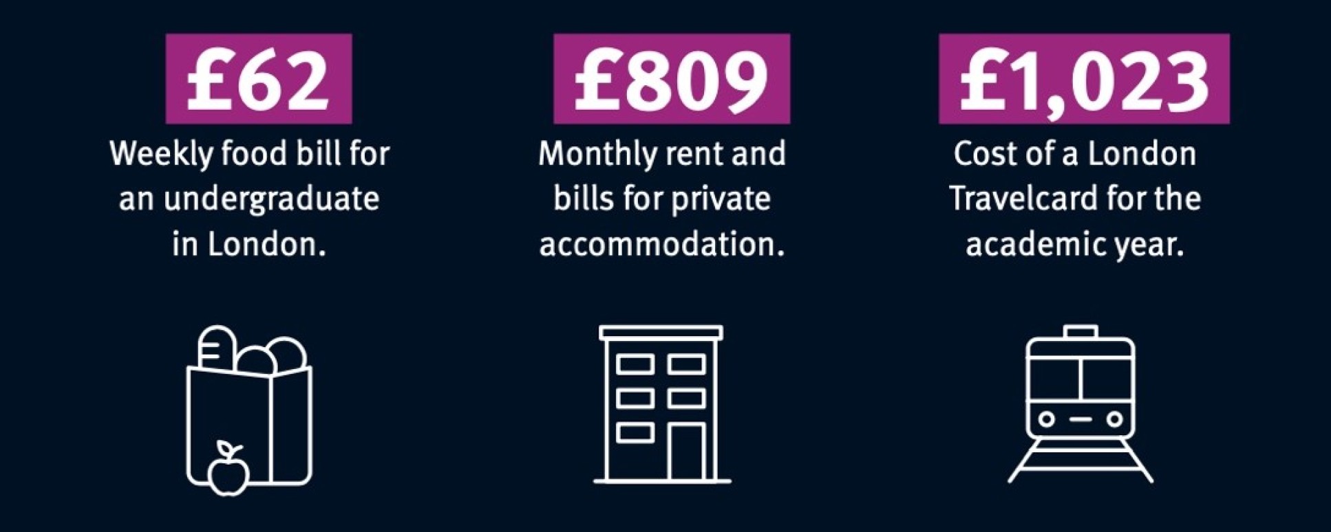 All applications are assessed on a mechanism based on the cost of living in London. The infographic below provides an outline of the current costs of living in London for an undergraduate student.