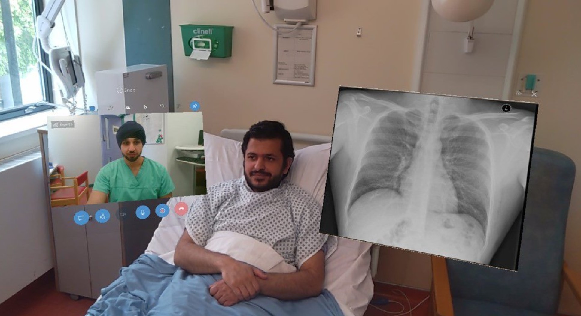 The mixed-reality technology enables the clinical live stream to be supplemented visually with digital information, such as the patient’s drug charts and treatment information or radiographs, which can be superimposed as holograms onto the environment.