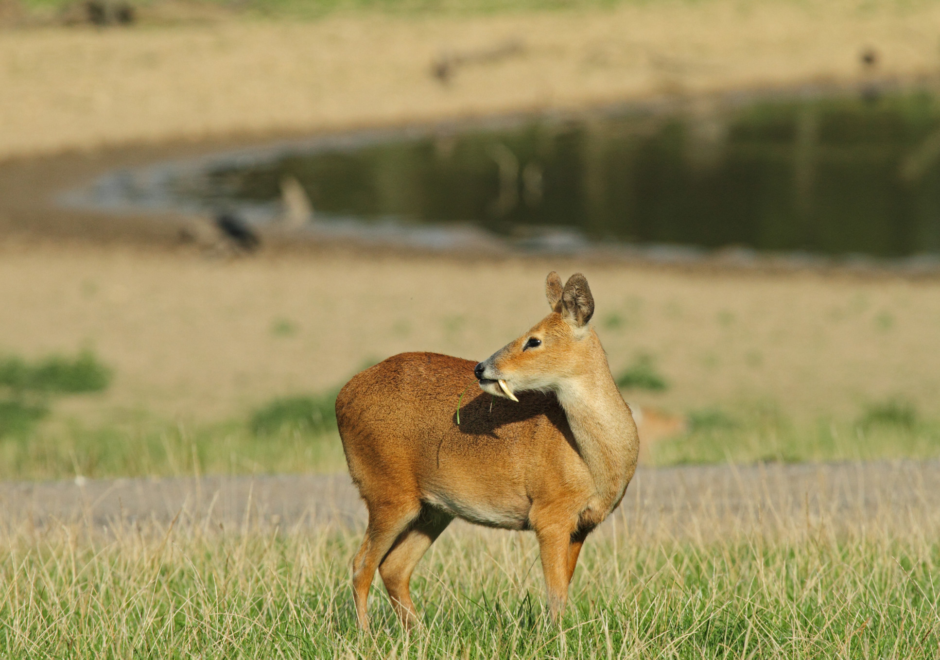 The Chinese water deer is a distinctive species of deer, notable for a variety of physical characteristics not seen on other species. Aside from its solitary nature, small stature, and prominent swimming ability, it also possesses two elongated canines which protrude downwards from its mouth. Most conspicuously, it has, during the course of its evolution, lost its antlers, instead using its canines during combat and for display. These unique characteristics make it especially suited to the environments it now inhabits in the UK.