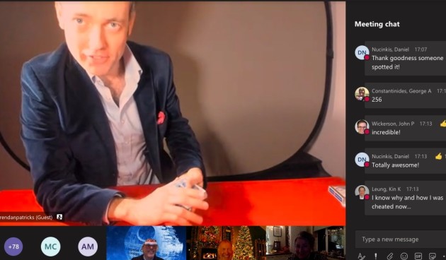We were entertained by two department favourites — actor and magician Brendan Patricks, returning for his third year to wow us remotely with close-up magic, and EEE technician Amine Halimi providing the music in one of our virtual break-out rooms.