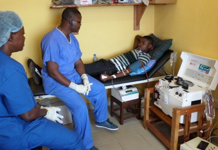 Plasma donation at the Connaught Hospital, Freetown CREDIT: Professor Calum Semple