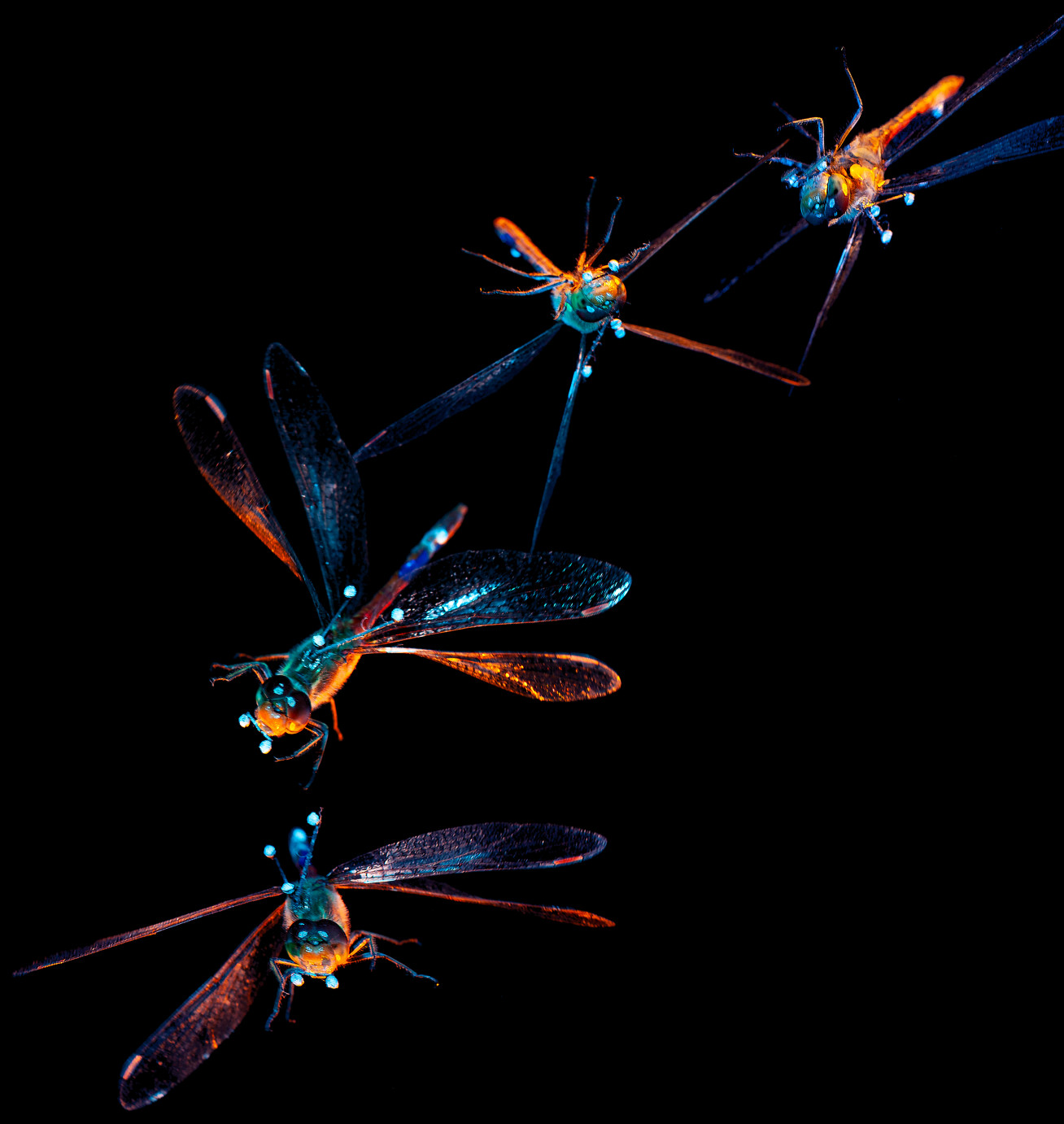 They found that conscious dragonflies, when dropped from the upside-down position, somersaulted backwards to regain the rightside-up position. Dragonflies that were unconscious also completed the somersault, but more slowly.