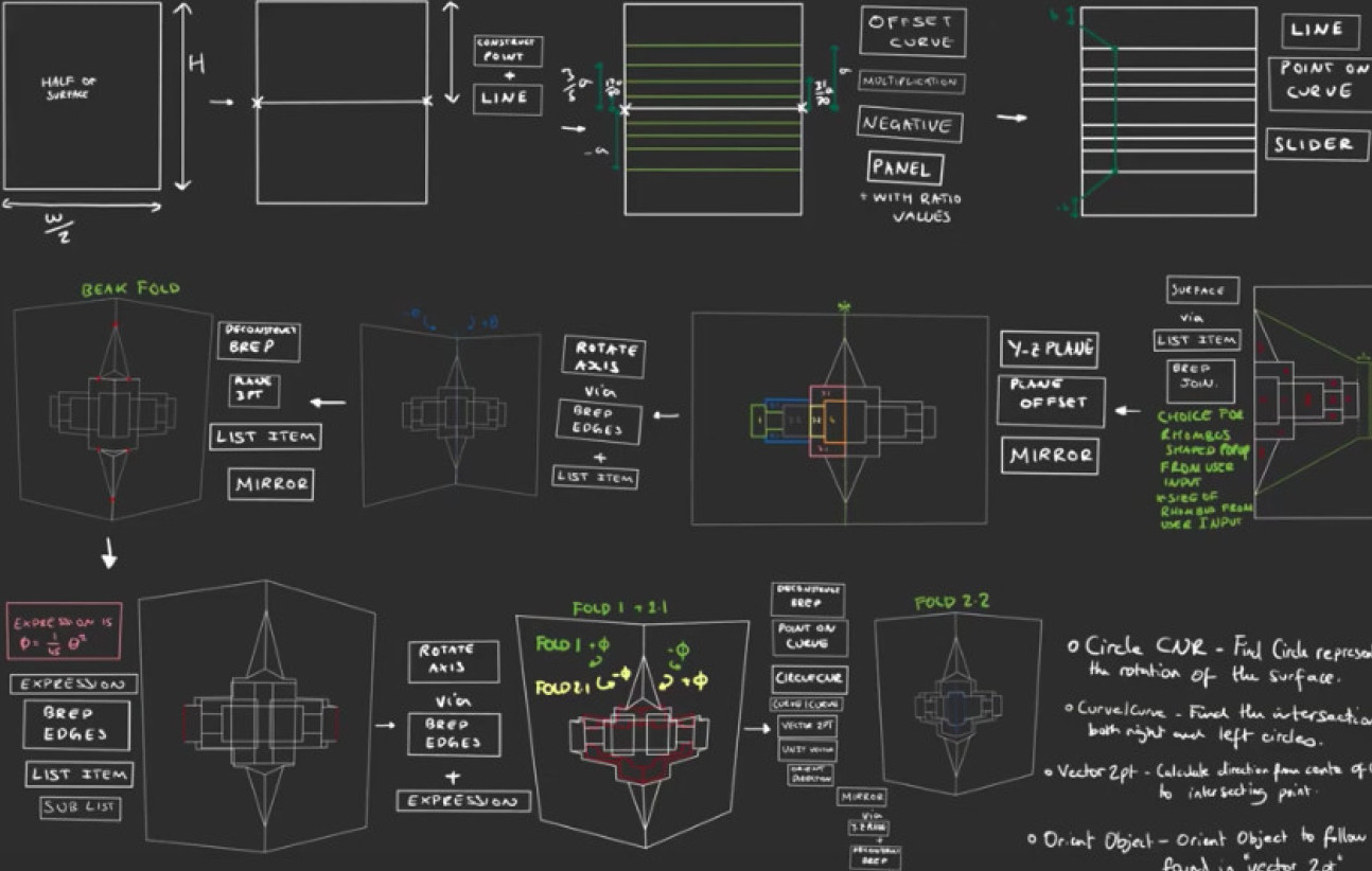 “It was a real challenge to adapt this course to a fully online module. We wondered about simple things like whether students would have paper to fold. We worried that the digital teaching wouldn’t give students enough time to consolidate their learning of the parametric aspects of the software. But it turned out that this cohort of students were as good at learning Grasshopper as ever, if not of a higher standard.