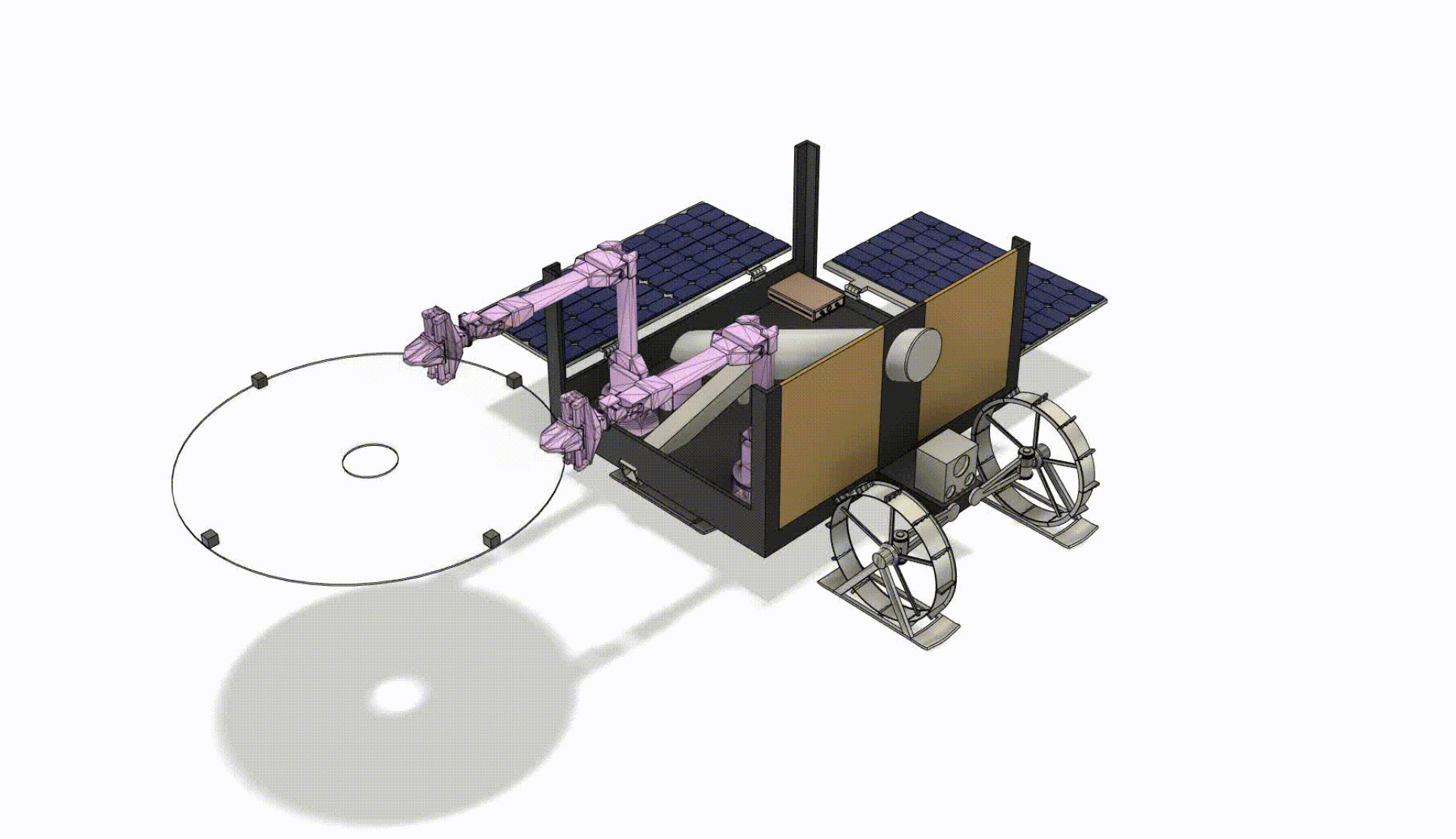 Team Luna Recon conceptualised a rover that could perform both excavation and ISRU. Weighing under 60kg and fitting snugly inside a 1 cubic metre box, the Regolith Excavation and Construction I rover (otherwise known as 'R-ECon I') excavates the moon's regolith (the fine, powdery dust, broken rocks, and other mineral matter of the upper lunar surface). The rover then uses natural solar radiation to perform solar sintering, converting the lunar regolith from a fine powder to structurally strong building blocks.